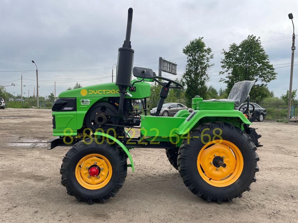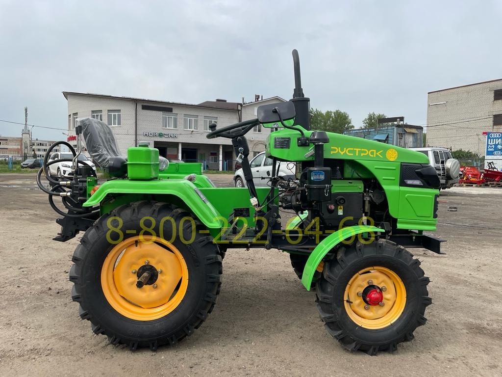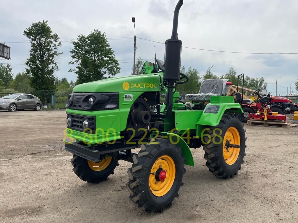 Минитрактор Rustrack Т-18, 2х4, блокировка дифференциала, регулируемая колея передних и задних колес 1100-1400 мм, зеркала заднего вида, передние крылья, двухконтурный гидрораспределитель, легкое и надежное рулевое управление червячного типа, полноценная тракторная трансмиссия, оснащается датчиком давления масла, датчиком температуры охлаждающей жидкости и амперметром.