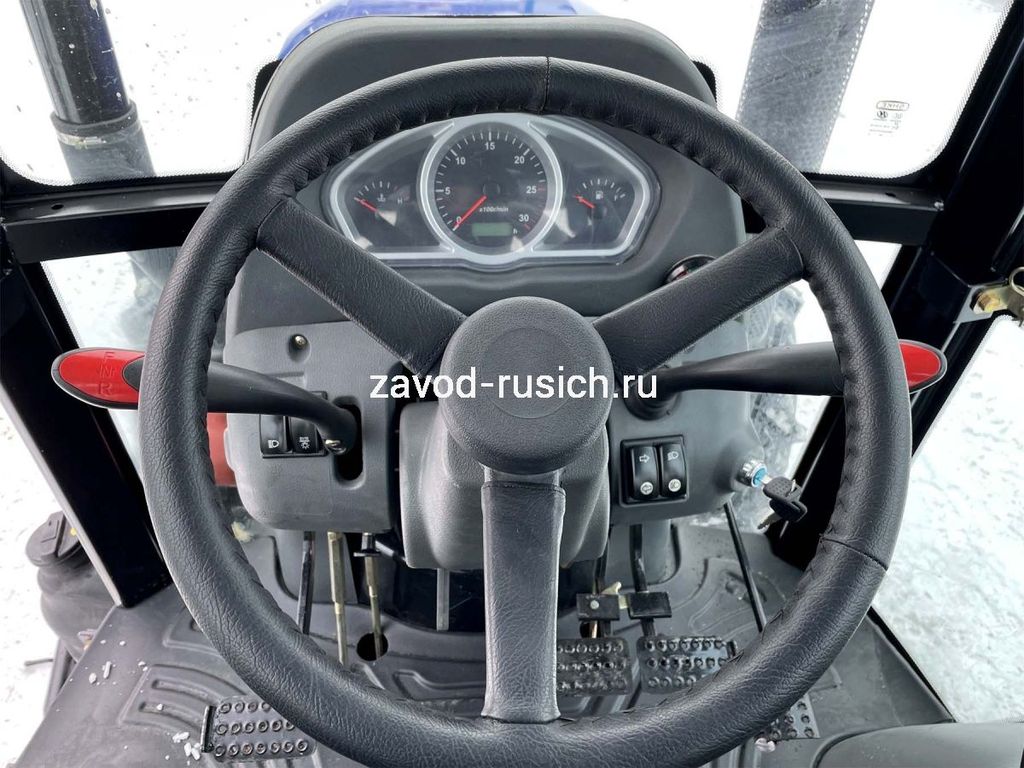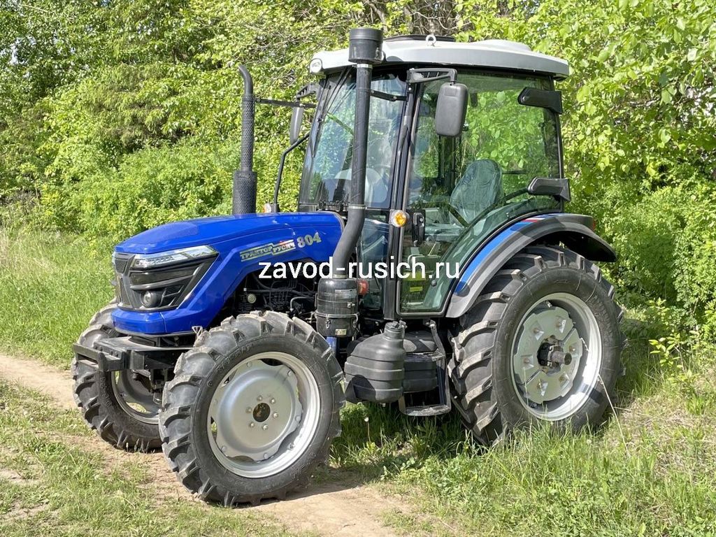 Трактор РУСИЧ-804 GII с кабиной с кондиционером дизель 80 л.с, 4х4, 4 цилиндра, МКП 12+12 рычаг сбоку, с синхронизатором, блокировка дифференциала, ГУР, двухдисковое сцепление, ровный пол, передний и задний груз в комплекте, 2 пары гидровыходов, отопитель кабины, воздушный компрессор, кондиционер.
