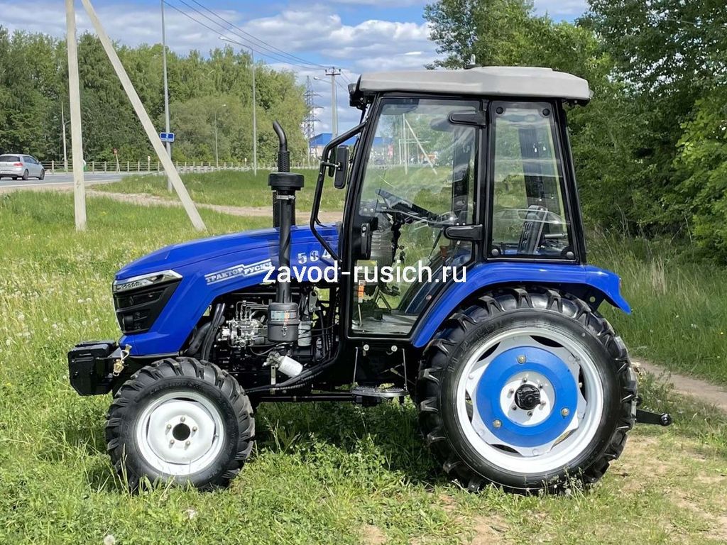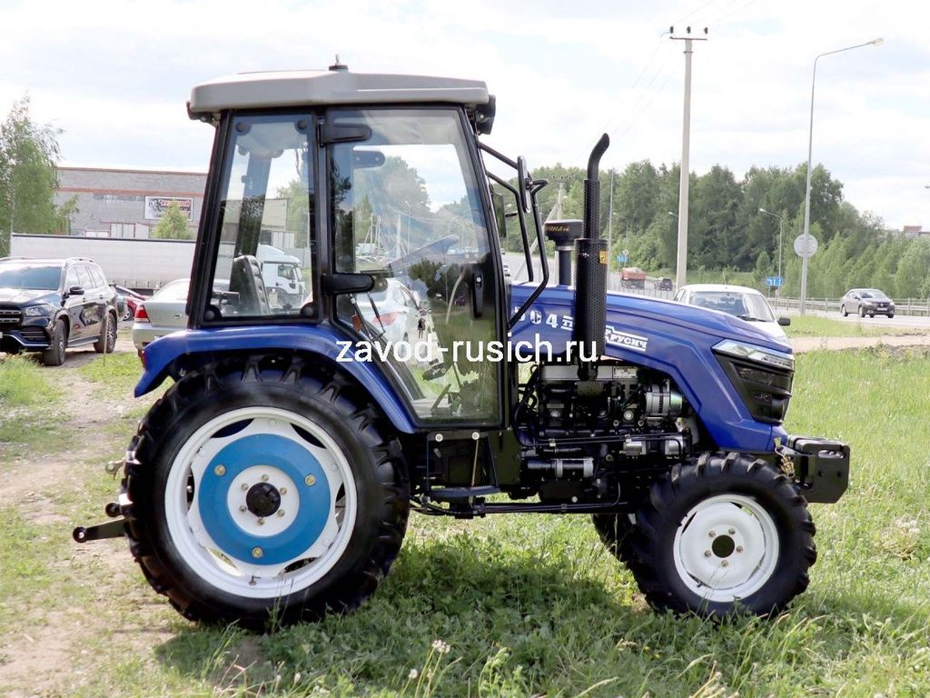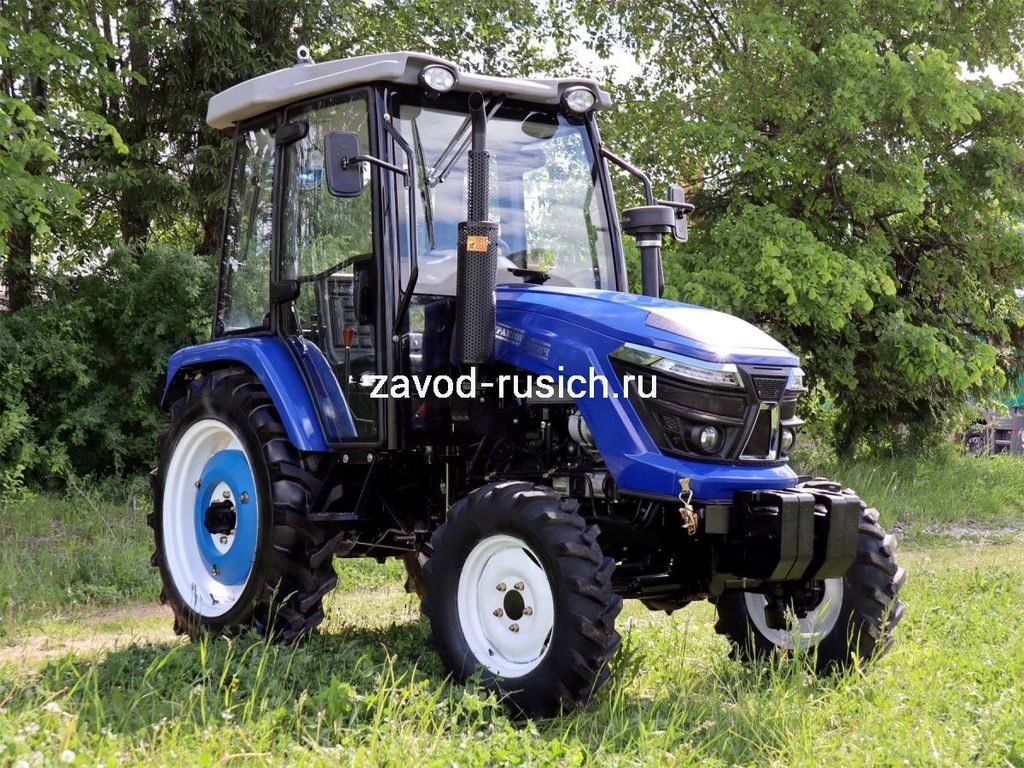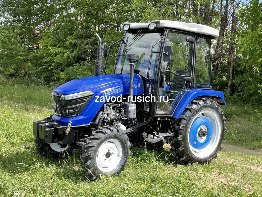 Трактор РУСИЧ TB-504 с кабиной дизель 50 л.с, 4х4, 4 цилиндра, МКП 8+2 переключатель сбоку, блокировка дифференциала, ГУР, двухдисковое сцепление, ровный пол, передний и задний утяжелители в комплекте, 2 секционный распределитель, воздушный фильтр, отопитель кабины.