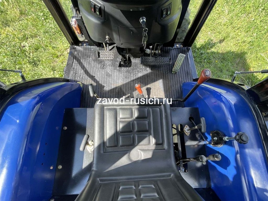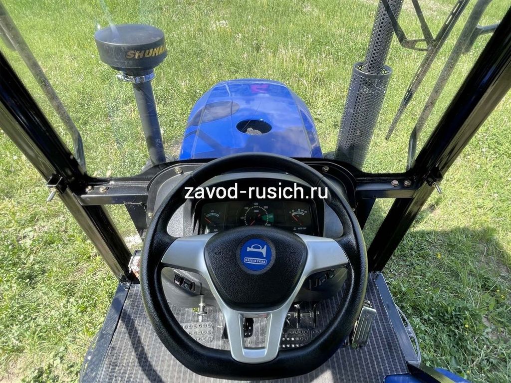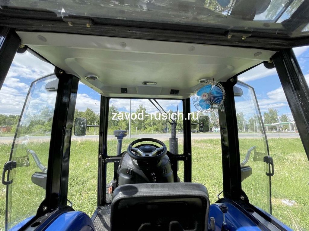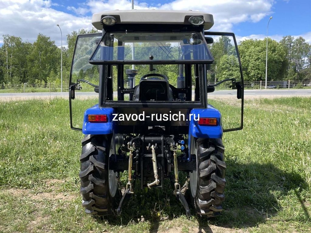 Трактор РУСИЧ TB-504 с кабиной дизель 50 л.с, 4х4, 4 цилиндра, МКП 8+2 переключатель сбоку, блокировка дифференциала, ГУР, двухдисковое сцепление, ровный пол, передний и задний утяжелители в комплекте, 2 секционный распределитель, воздушный фильтр, отопитель кабины.