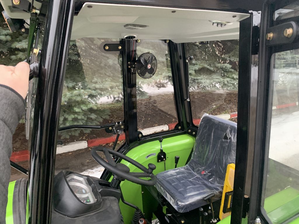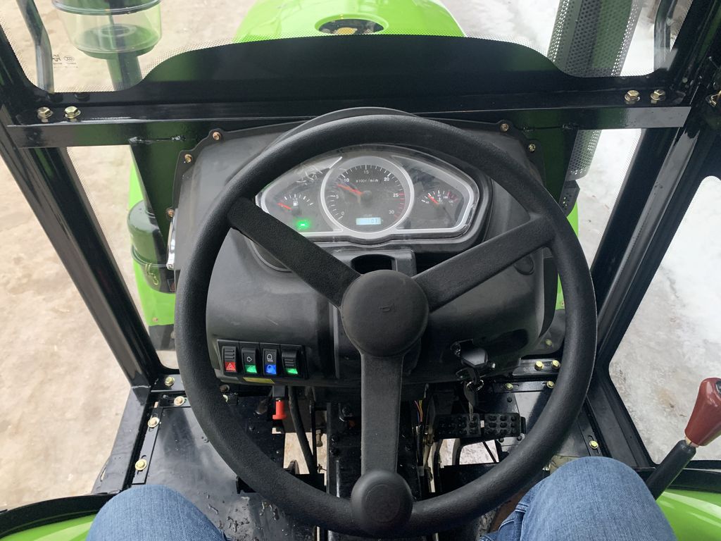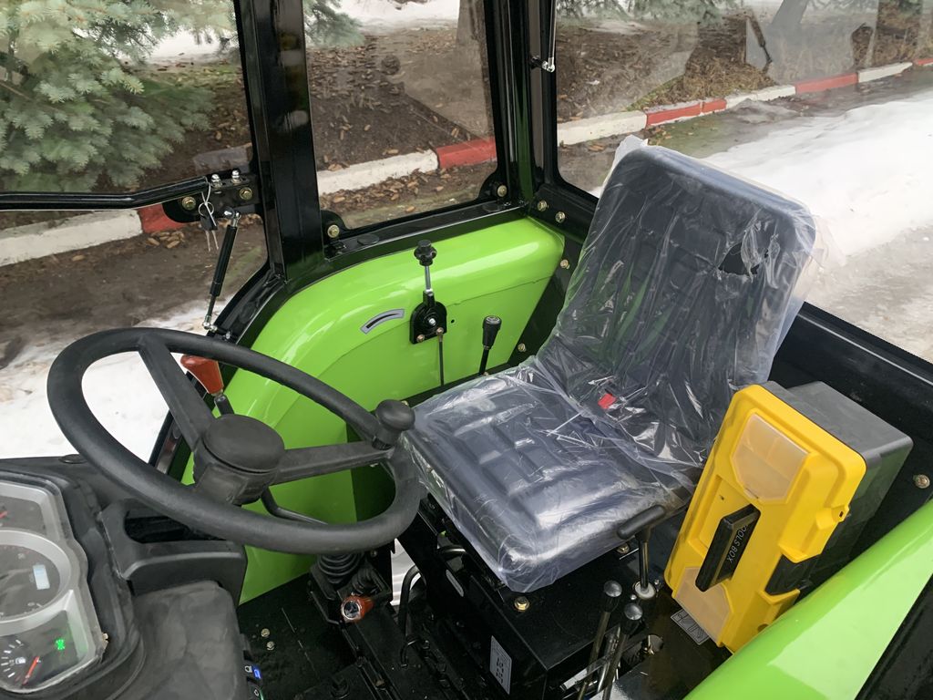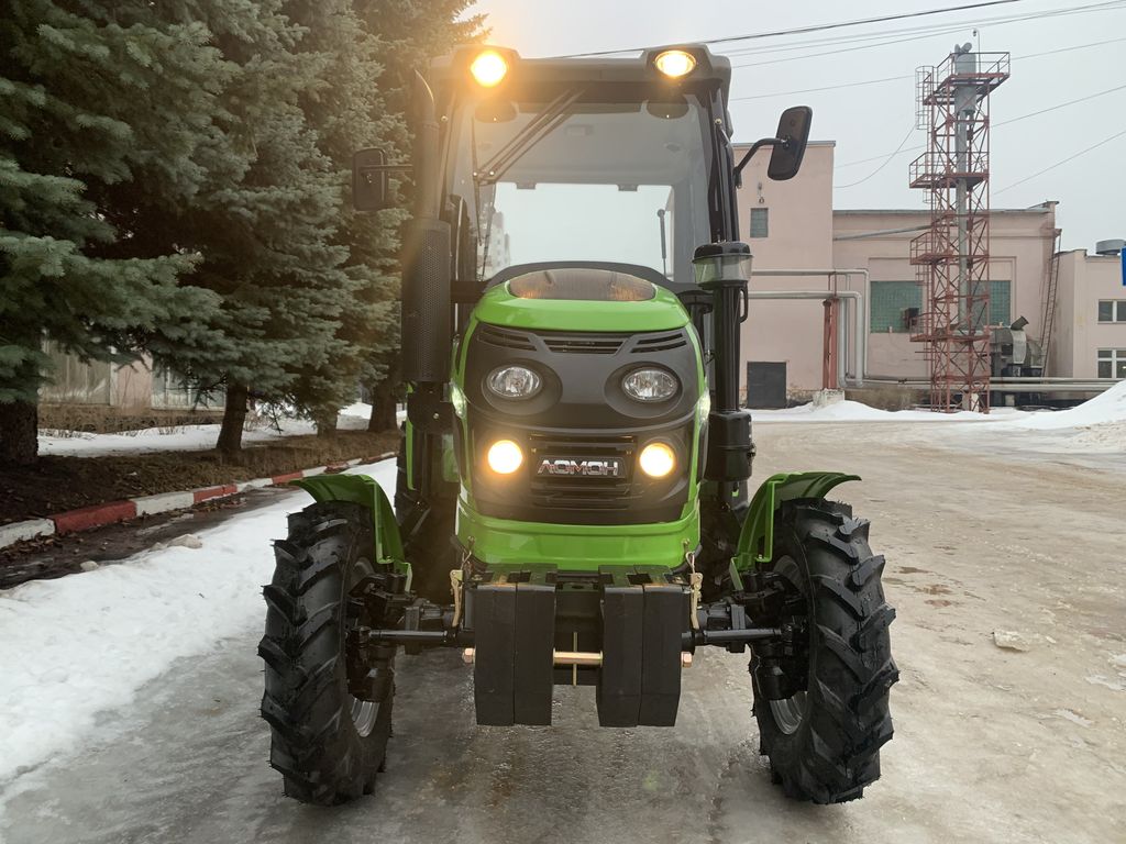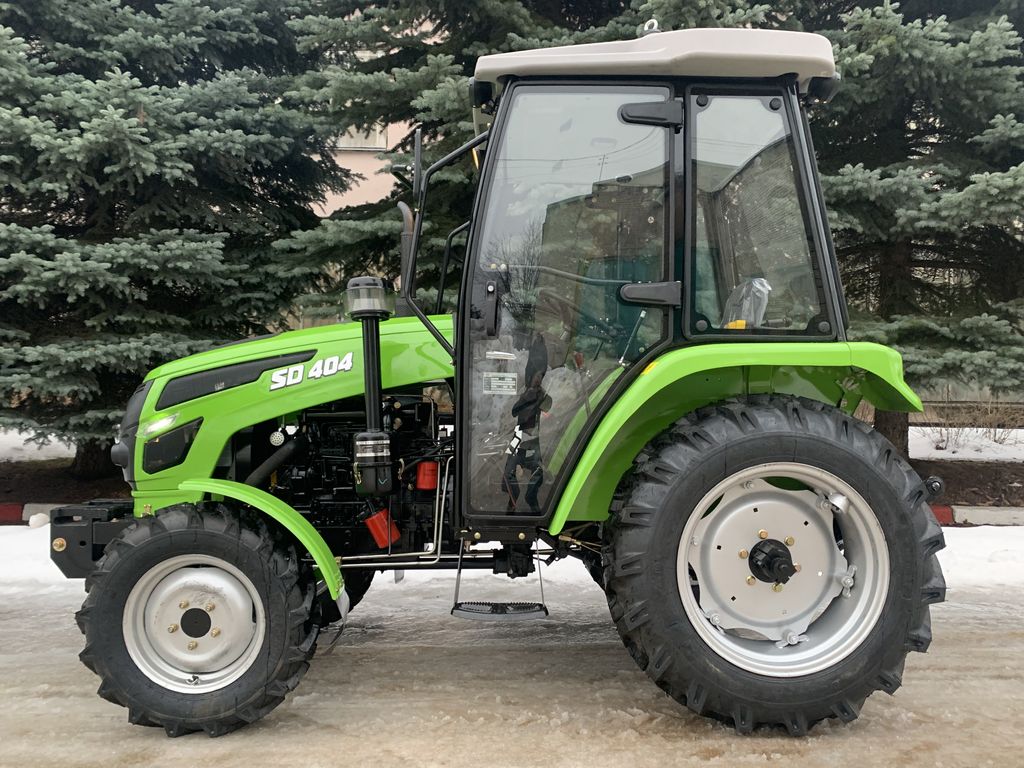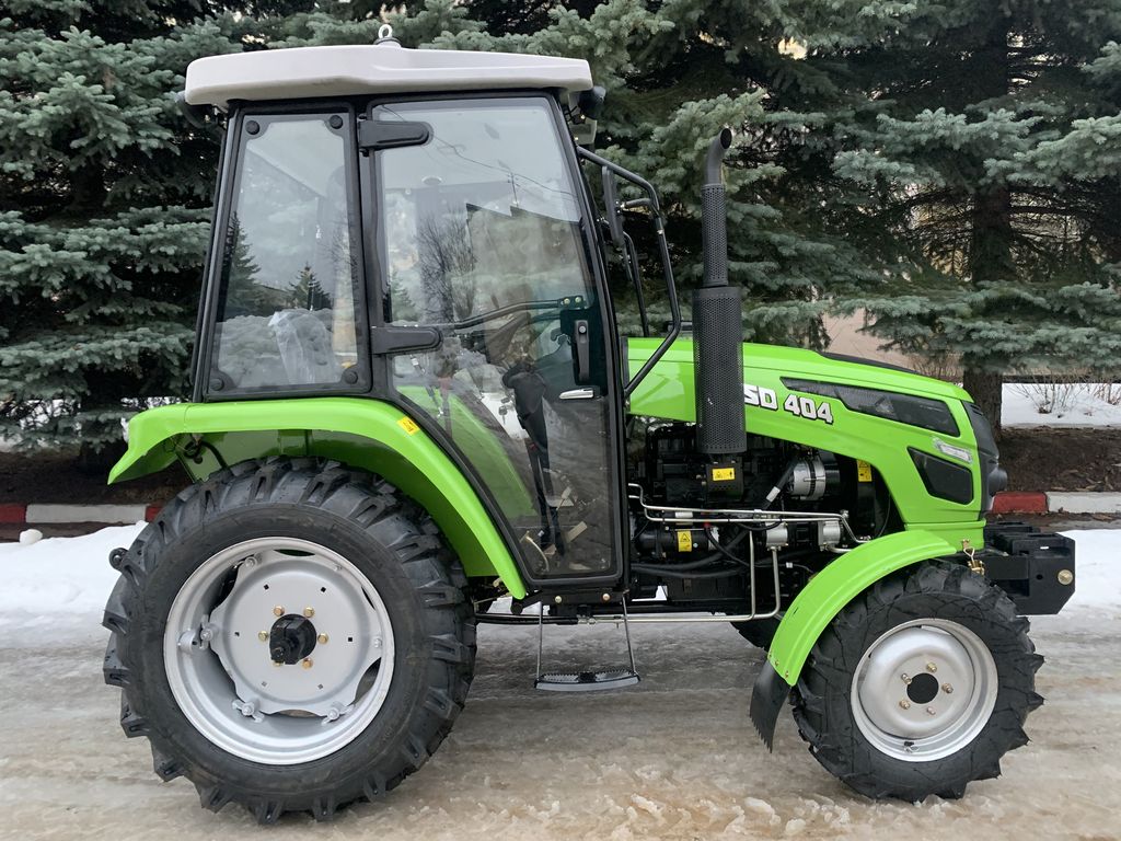 Колесный трактор AОМОН SD404 с отапливаемой кабиной оборудован дизельным четырехтактным двигателем мощностью 40 лошадиных сил, гидроусилителем руля, двухдисковым сцеплением, МКП 8F + 2R, мягким сиденьем, отопителем и герметизированной кабиной, 2 парами гидровыходов, передними грузами.