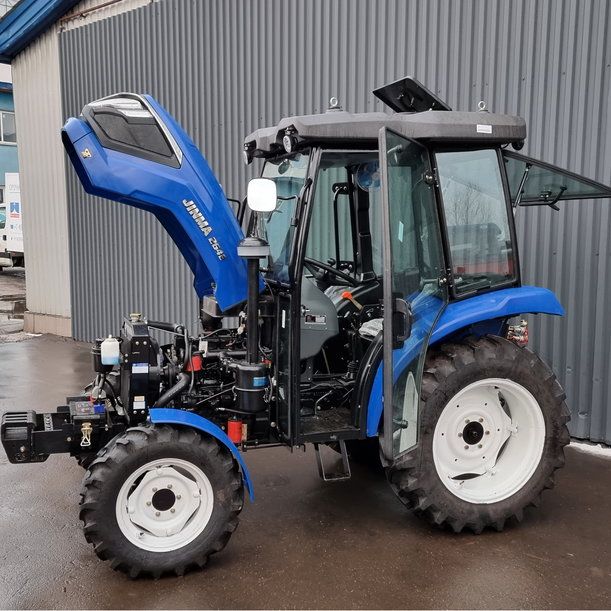 Универсальный, компактный и многоцелевой китайский трактор (минитрактор) Jinma (Джинма) 264Е в обновленном дизайне с кабиной может применяться как в сельском хозяйстве так и для коммунальной уборки территорий, обслуживания спортивных сооружений, в строительстве и других сферах.
