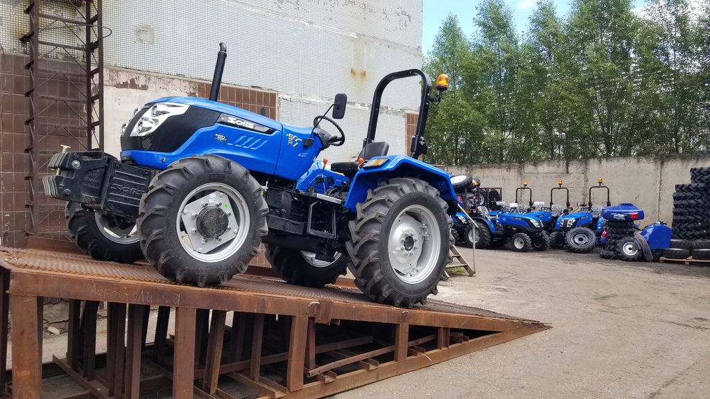 На минитрактор СОЛИС 50 можно установить фронтальный погрузчик (КУН) и колеса с разными шинами.