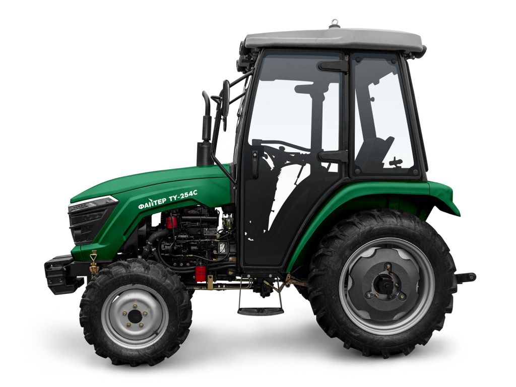 Трактор Файтер TY-254С с кабиной — компактный трактор для выполнения сельскохозяйственных и коммунальных задач, оснащенный 24-сильным трёхцилиндровым дизельным двигателем и кабиной с дополнительной помпой отопления.
