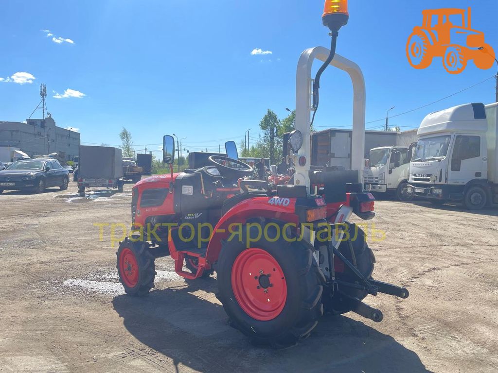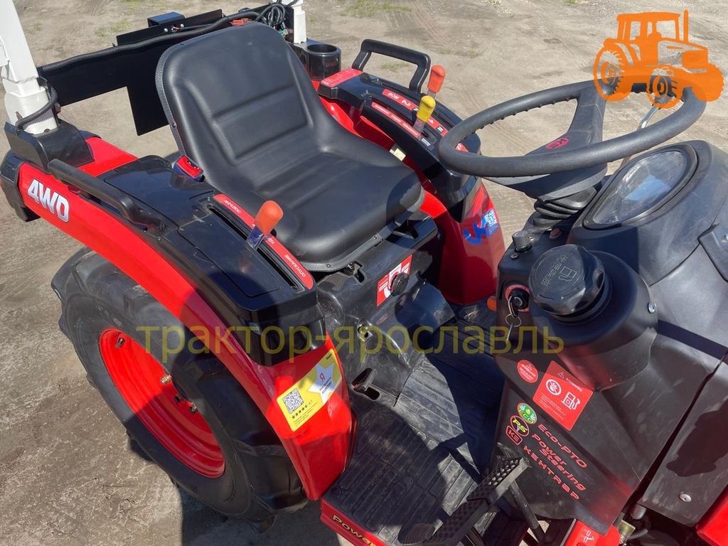 Трактор имеет полный привод и блокировку дифференциала, что позволяет работать в любых условиях. Также есть трёхточечная навесная система и два гидравлических выхода для подключения навесного оборудования.